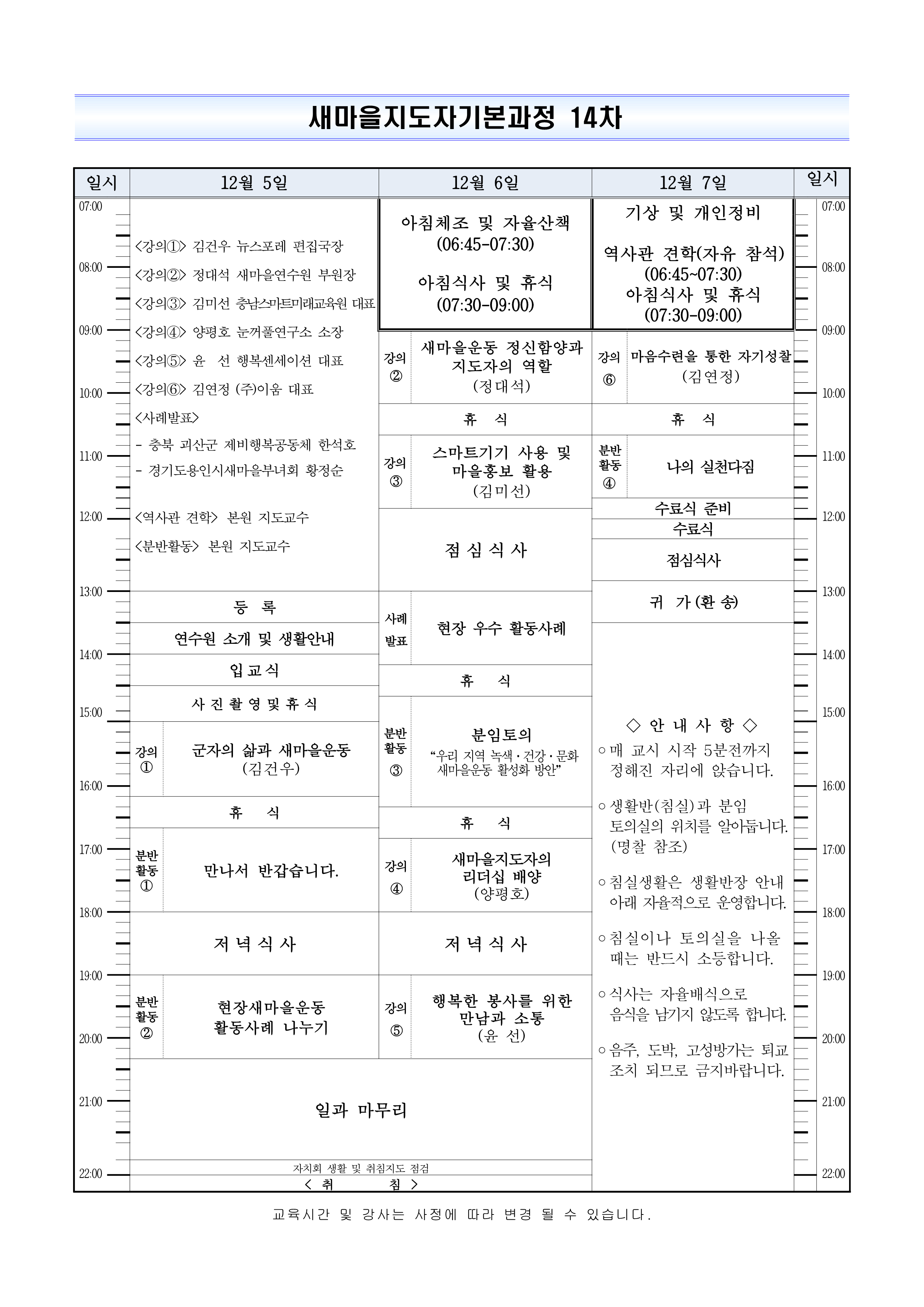 2025. 12. 05 ~ 12. 07 새마을지도자 기본과정 14차 입교안내