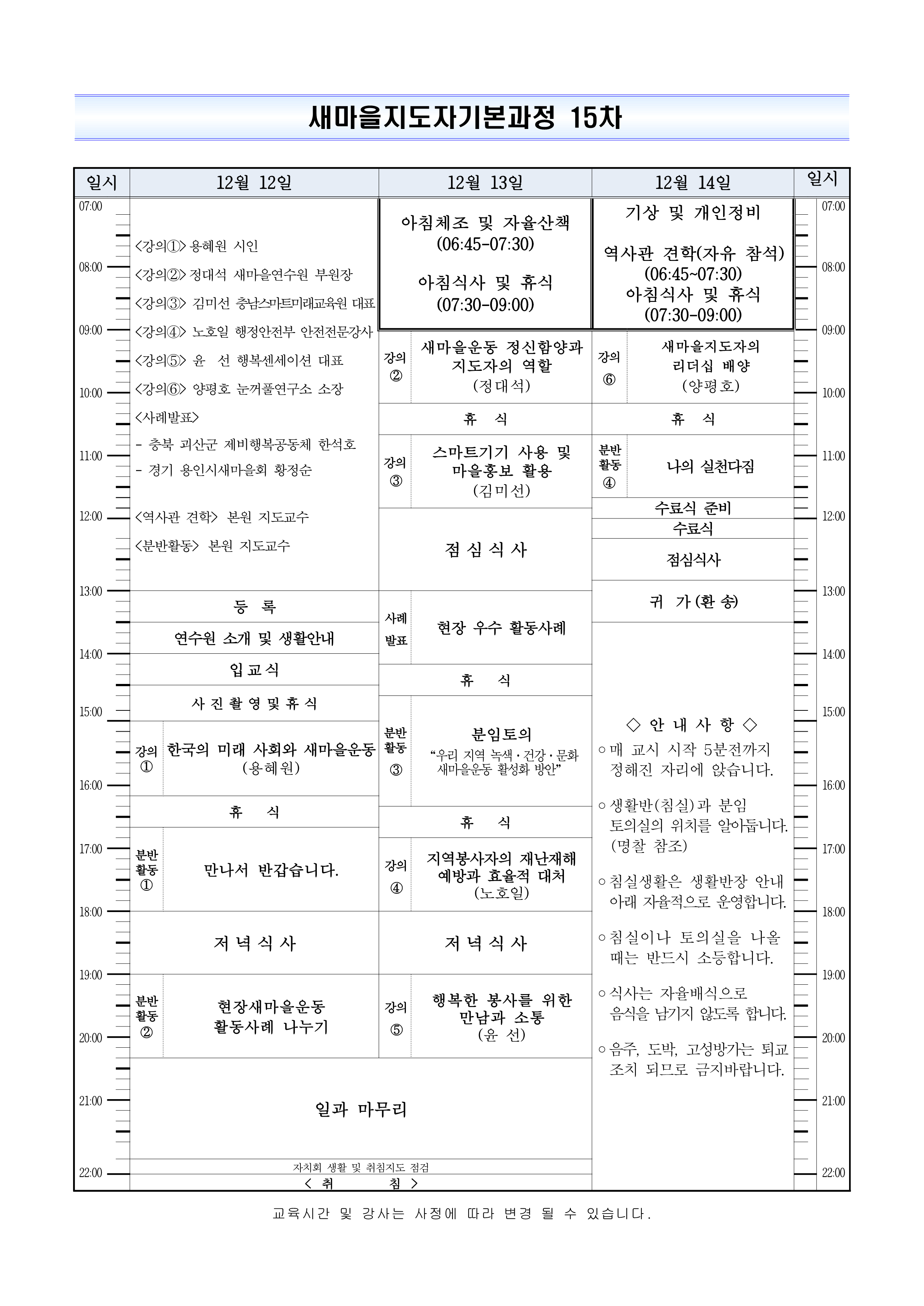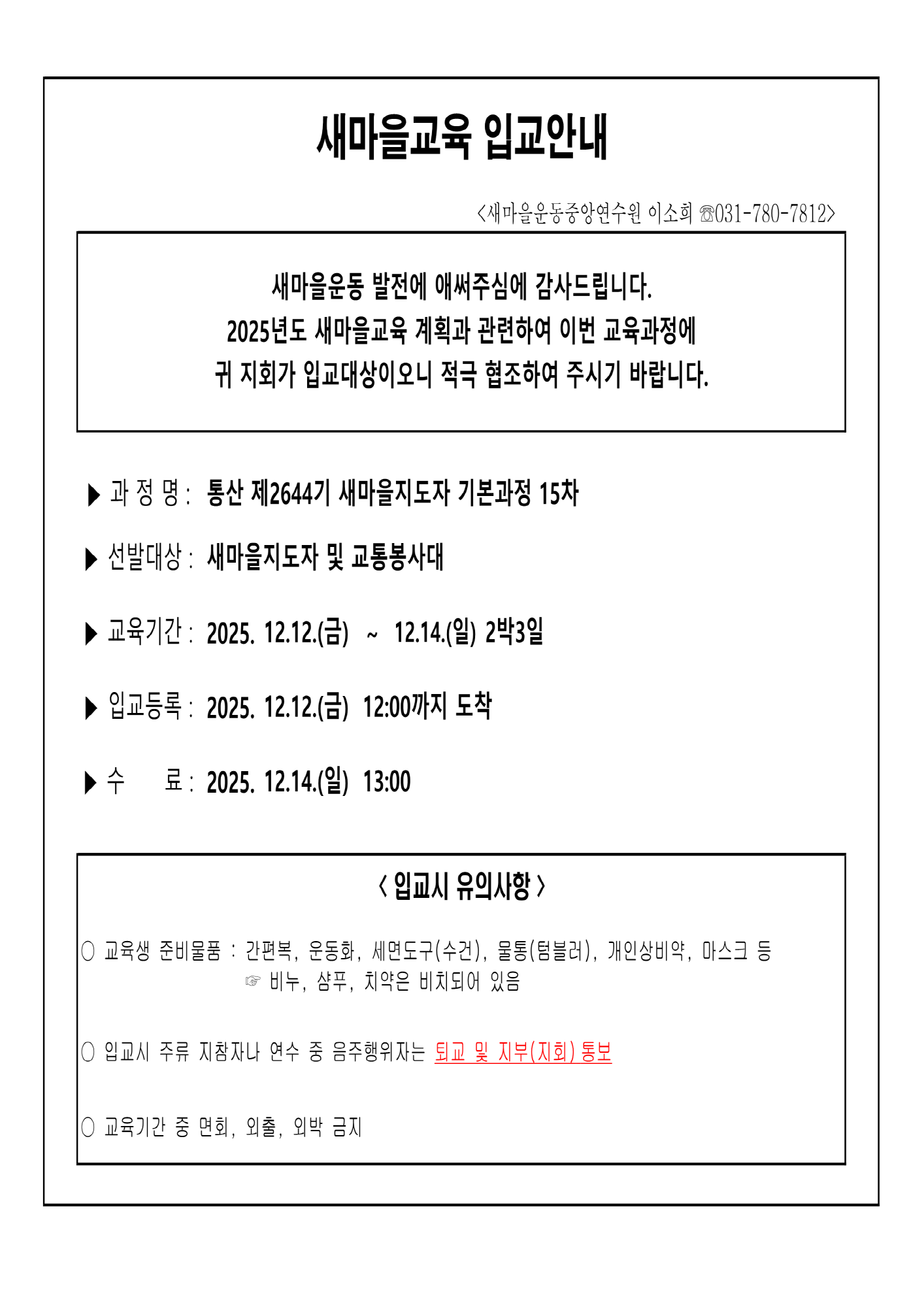2025. 12. 12 ~ 12. 14 새마을지도자 기본과정 15차 입교안내